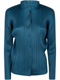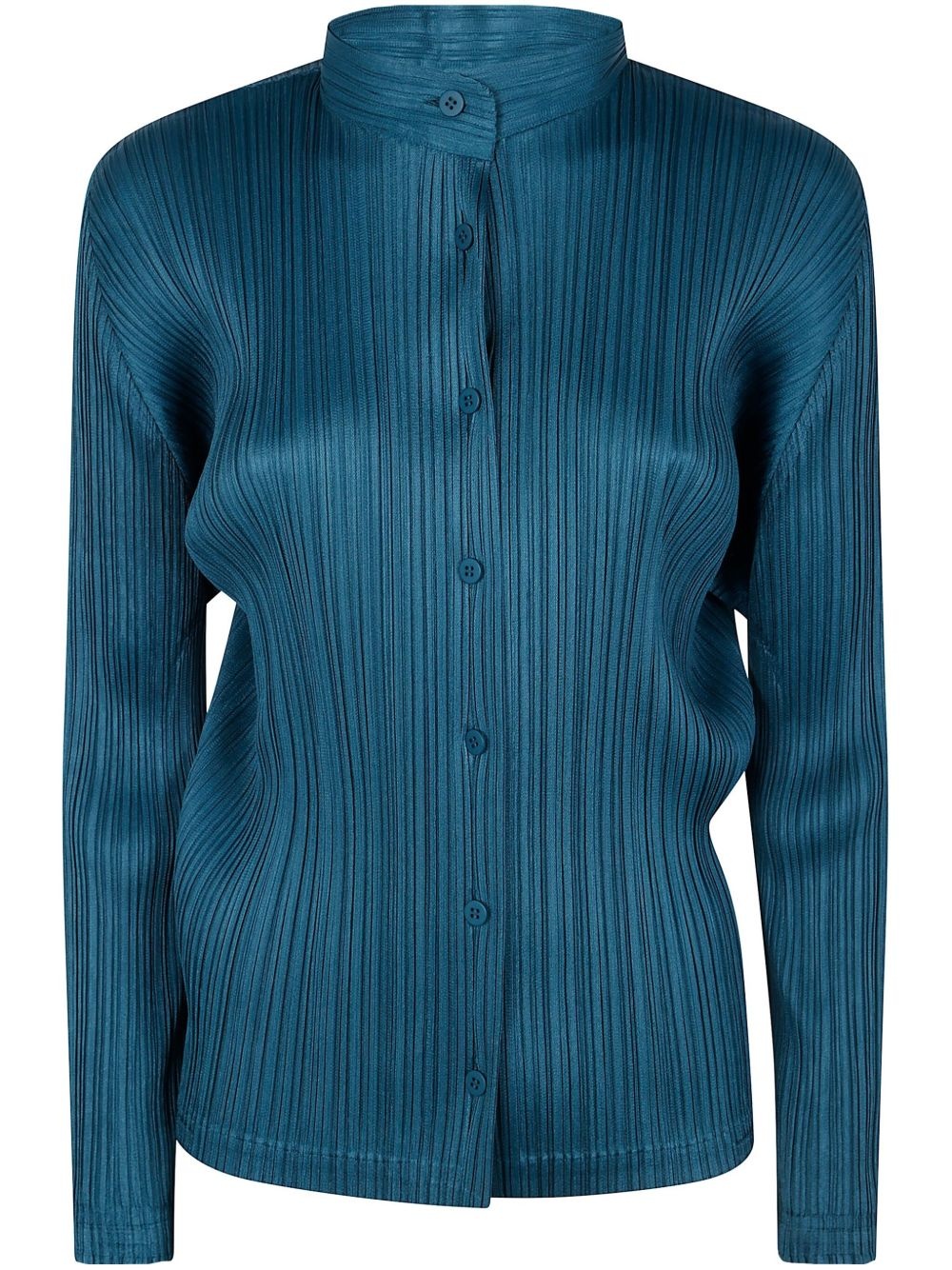 pleated blouse Highlights - Prussian blue - Front button fastening - Collarless - Long sleeves - Straight hem Imported Composition Polyester 100% SIZE & FIT FittingInformation This piece's size conversion is based on body measurements; for help with this item's sizing, refer to our Size & Fit Guide