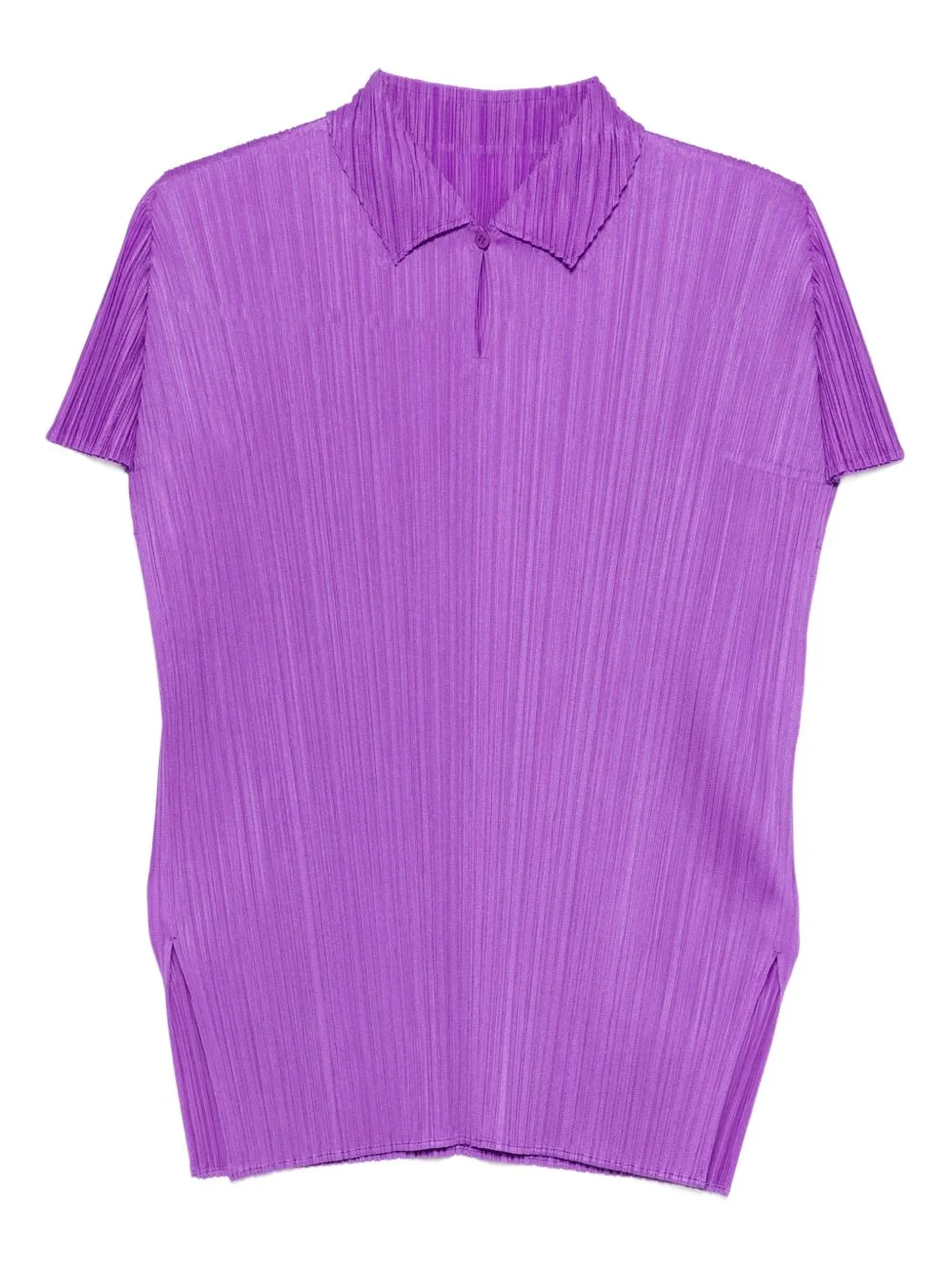 pleated collared polo shirt Highlights - Purple - Pleated design - Collared - Short sleeves - Side slits - Front button closure Imported Composition Polyester 100% SIZE & FIT Model measurements Height 5 ft 10 in(1.78 m) Bust/Chest 33.46 in(85 cm) Hips 36.22 in(92 cm) Waist 23.22 in(59 cm) FittingInformation This piece's size conversion is based on body measurements; for help with this item's sizing, refer to our Size & Fit Guide Washing instructions Machine Wash