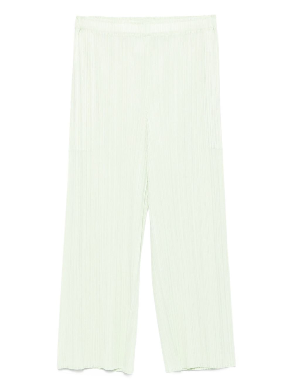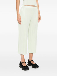 pleated cropped trousers Highlights - Light green Imported Composition Polyester 100% SIZE & FIT Model measurements Height 5 ft 10 in(1.78 m) Bust/Chest 33.46 in(85 cm) Hips 36.22 in(92 cm) Waist 23.22 in(59 cm) FittingInformation Designed with a wide-leg cut, these trousers allow for a close fit at the waist and offer a loose and roomy fit over the leg The elasticated waist allows for a comfortable fit Made from a midweight non-stretch fabric