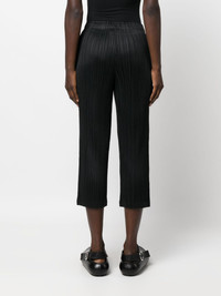 pleated cropped trousers Highlights - Black - Fully pleated - Elasticated waistband - Straight leg - Cropped - Two side inset pockets Imported Composition Polyester 100% SIZE & FIT Model measurements Height 5 ft 10 in(1.77 m) Bust/Chest 32.28 in(82 cm) Hips 35.03 in(89 cm) Waist 25.19 in(64 cm) FittingInformation Designed for a straight-leg fit, these trousers allow for a close fit at the waist and an unrestricted, comfortable fit over the leg Cropped in length The pleated construction on this piece allows for additional movement and flexibility in the fit This piece's size conversion is based on body measurements; for help with this item's sizing, refer to our Size & Fit Guide Washing instructions Machine Wash