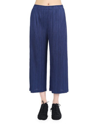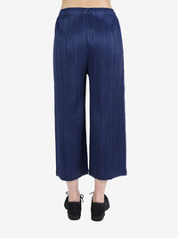 pleated cropped trousers Highlights - Navy blue - Fully pleated - Elasticated waistband - Elasticated waistband - Cropped leg Imported Composition Polyester 100% SIZE & FIT FittingInformation Designed with a wide-leg cut, these trousers allow for a close fit at the waist and offer a loose and roomy fit over the leg The elasticated waist allows for a comfortable fit The pleated construction on this piece allows for additional movement and flexibility in the fit This piece's size conversion is based on body measurements; for help with this item's sizing, refer to our Size & Fit Guide