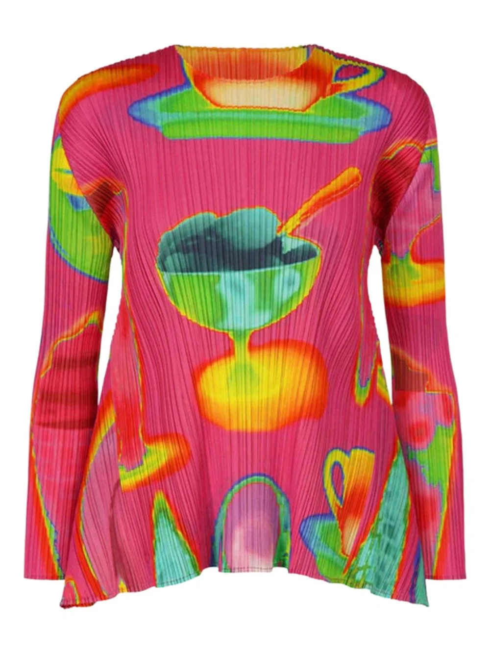 Pleated graphic shirt Highlights - Pink - Graphic print - Pleated design - Round neck - Long sleeves - Straight hem Imported Composition Polyester 100% SIZE & FIT FittingInformation This piece's size conversion is based on body measurements; for help with this item's sizing, refer to our Size & Fit Guide Washing instructions Read Manufacturer Guidelines