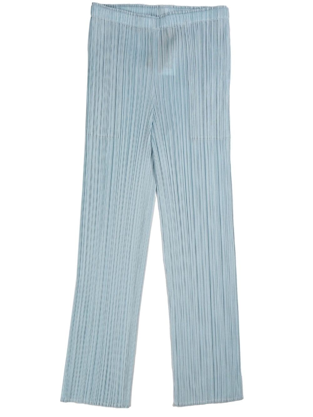 plisse-effect slim-cut trousers Highlights - Light blue - Plisse effect - Slim cut - Cropped leg - Elasticated waistband Imported Composition Polyester 100% SIZE & FIT FittingInformation This piece's size conversion is based on body measurements; for help with this item's sizing, refer to our Size & Fit Guide Washing instructions Machine Wash