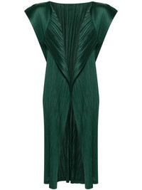 plisse midi vest Highlights - Dark green - Textured finish - Plisse effect - Sleeveless - Mid-length - Straight hem - Open front Imported Composition Polyester 100% SIZE & FIT Model measurements Height 5 ft 10 in(1.77 m) Bust/Chest 32.28 in(82 cm) Hips 35.03 in(89 cm) Waist 25.19 in(64 cm) FittingInformation Designed to be unstructured, offering a loose fit throughout The pleated construction on this piece allows for additional movement and flexibility in the fit This piece fits true to size – take your usual size Washing instructions Machine Wash