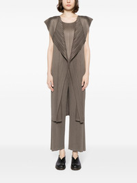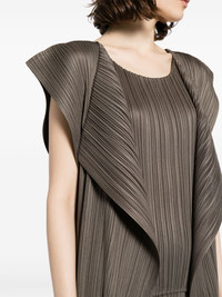 plisse satin cardigan Highlights - Khaki - Satin finish - Plisse effect - Layered design - Cape design - Sleeveless - Below-knee length Imported Composition Polyester 100% SIZE & FIT Model measurements Height 5 ft 10 in(1.78 m) Bust/Chest 32.67 in(83 cm) Hips 37 in(94 cm) Waist 25.59 in(65 cm) FittingInformation Designed to be unstructured, offering a loose fit throughout The pleated construction on this piece allows for additional movement and flexibility in the fit This piece's size conversion is based on body measurements; for help with this item's sizing, refer to our Size & Fit Guide Washing instructions Machine Wash