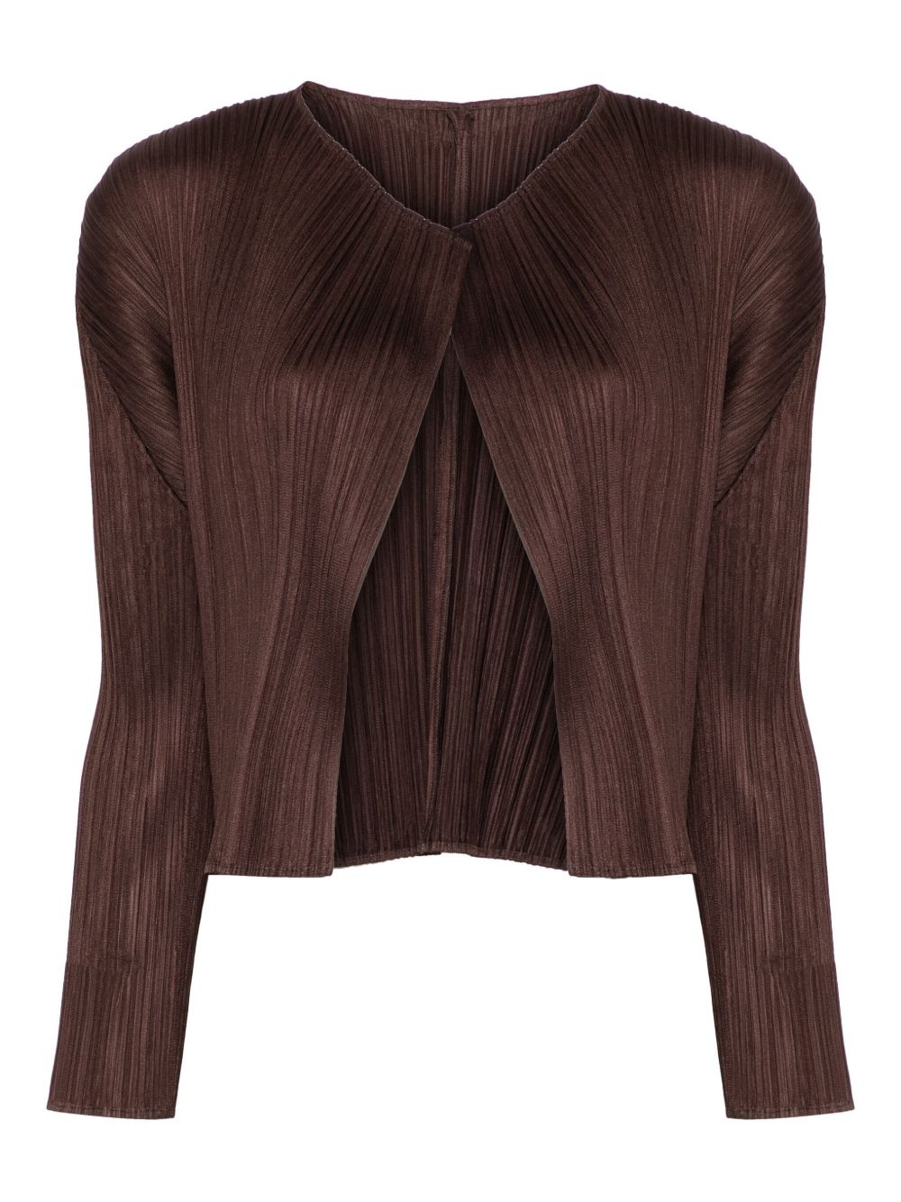 plisse cardigan Highlights - Chocolate brown - Drop shoulder - Long sleeves - Cropped Imported Composition Polyester 100%