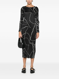 plisse-effect midi dress Highlights - Black - Graphic print - Pleated texture - Long sleeves - Round neck Imported Composition Polyester 100% SIZE & FIT Model measurements Height 5 ft 9 in(1.76 m) Bust/Chest 31.49 in(80 cm) Hips 35.43 in(90 cm) Waist 23.62 in(60 cm) FittingInformation This piece's size conversion is based on body measurements; for help with this item's sizing, refer to our Size & Fit Guide Washing instructions Read Manufacturer Guidelines