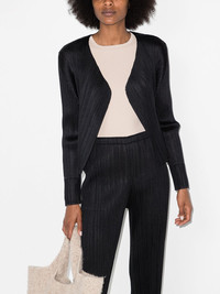 plisse long-sleeve cardigan You don't like to be buttoned up, and you don't like your cardigans to be either. With an open front amid a pleated design, this piece from Pleats Please Issey Miyake is as modest as you make it. Your cardi, your call. Imported Composition Polyester 100% SIZE & FIT Model measurements Height 5 ft 11 in(1.8 m) Bust/Chest 32.67 in(83 cm) Hips 35.82 in(91 cm) Waist 25.98 in(66 cm) FittingInformation This piece fits true to size. We recommend you get your regular size Cut for a loose fit Made with a mid-weight fabric