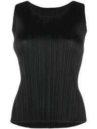 plisse scoop-neck vest Highlights - Black - Plisse effect - Scoop neck - Sleeveless - Straight hem Imported Composition Polyester 100% SIZE & FIT Model measurements Height 5 ft 11 in(1.8 m) Bust/Chest 33.07 in(84 cm) Hips 37.4 in(95 cm) Waist 25.19 in(64 cm) Measurement BUST 25.19 in(64 cm) FittingInformation Designed for a slim fit that sits just away from the body offering a close yet comfortable fit The pleated construction on this piece allows for additional movement and flexibility in the fit This piece's size conversion is based on body measurements; for help with this item's sizing, refer to our Size & Fit Guide