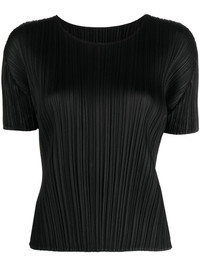 plisse short-sleeve T-shirt Highlights - Black - Plisse effect - Round neck - Short sleeves - Straight hem Imported Composition Polyester 100% SIZE & FIT Model measurements Height 5 ft 10 in(1.77 m) Bust/Chest 29.92 in(76 cm) Hips 34.25 in(87 cm) Waist 23.62 in(60 cm) FittingInformation Designed for a slim fit that sits just away from the body offering a close yet comfortable fit The pleated construction on this piece allows for additional movement and flexibility in the fit This piece's size conversion is based on body measurements; for help with this item's sizing, refer to our Size & Fit Guide Measurement BUST 26.77 in(68 cm) Washing instructions Machine Wash