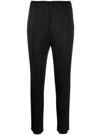 plisse tapered-leg cropped trousers Despite only debuting as a separate brand in 1994, pleated pieces were originally incorporated in the original Issey Miyake line in 1988. Now known as Pleats Please Issey Miyake, the label focuses on garment pleating and applying that technique to versatile and functional clothing, like these high-waisted tapered trousers that are endlessly versatile thanks to their sleek black hue and wrinkle-proof design. Highlights - Black - Plisse effect - High waist - Elasticated waistband - Two side slit pockets - Tapered leg - Cropped Imported Composition Polyester 100% SIZE & FIT Model measurements Height 5 ft 10 in(1.77 m) Bust/Chest 32.67 in(83 cm) Hips 35.43 in(90 cm) Waist 23.62 in(60 cm) FittingInformation Designed for a tapered fit, these trousers allow for a close fit at the waist and a loose unrestricted fit over the leg with a closer fit towards the ankle The elasticated waist allows for a comfortable fit The pleated construction on this piece allows for additional movement and flexibility in the fit This piece fits true to size – take your usual size Washing instructions Machine Wash