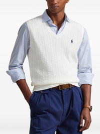 cable-knit embroidered-logo vest Highlights - White - Cable-knit - V-neck - Rib-knit armholes - Rib-knit hem - Embroidered logo Imported Composition Cotton 100% Washing instructions Read Manufacturer Guidelines