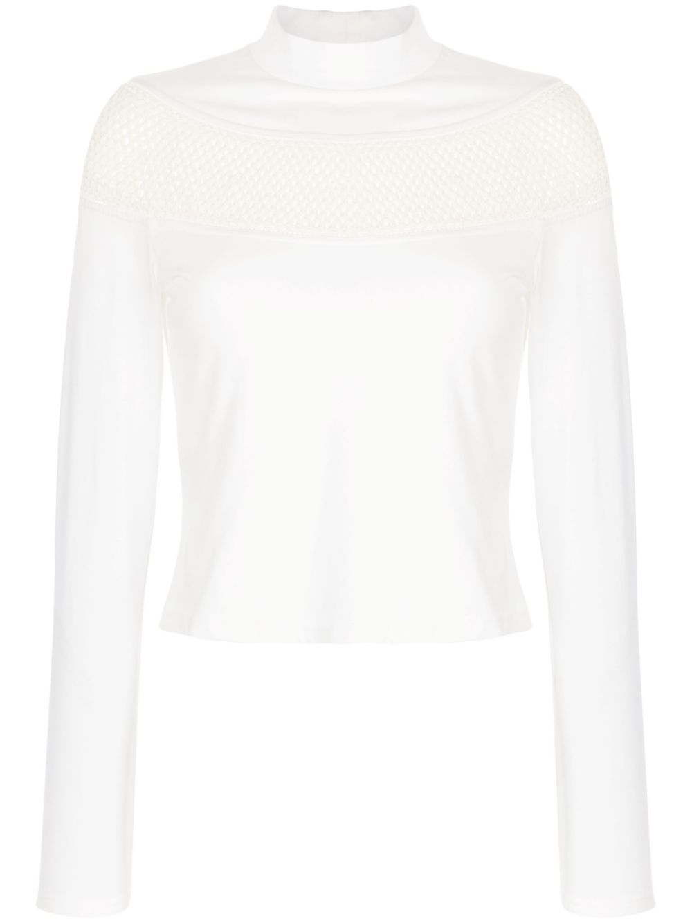 long-sleeve crochet-knit T-shirt Highlights - White - Cotton-wool blend - Crochet knit - Panelled design - High neck - Long sleeves - Straight hem Imported Composition Cotton 85%, Wool 15% SIZE & FIT Model measurements Height 5 ft 10 in(1.77 m) Bust/Chest 31.49 in(80 cm) Hips 35.43 in(90 cm) Waist 25.19 in(64 cm) Washing instructions Dry Clean Only