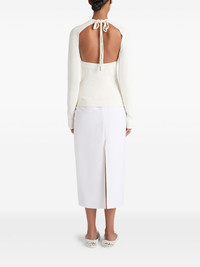 cut-out jumper Highlights - White - Rear tie fastening - Open back - Ribbed cuffs and hem - Long sleeves Imported Composition Viscose 57%, Cotton 43%