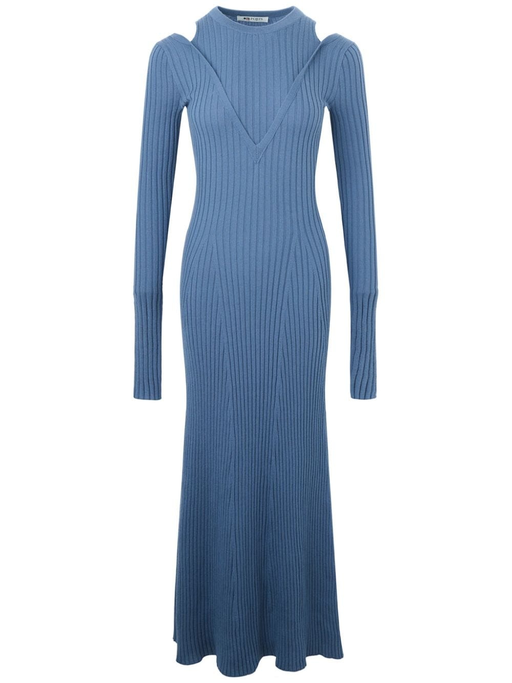 cut-out knitted dress Highlights - Blue - Wool - Ribbed knit - Long sleeves - Pleat detailing - Cut-out detailing Imported Composition Wool 100%