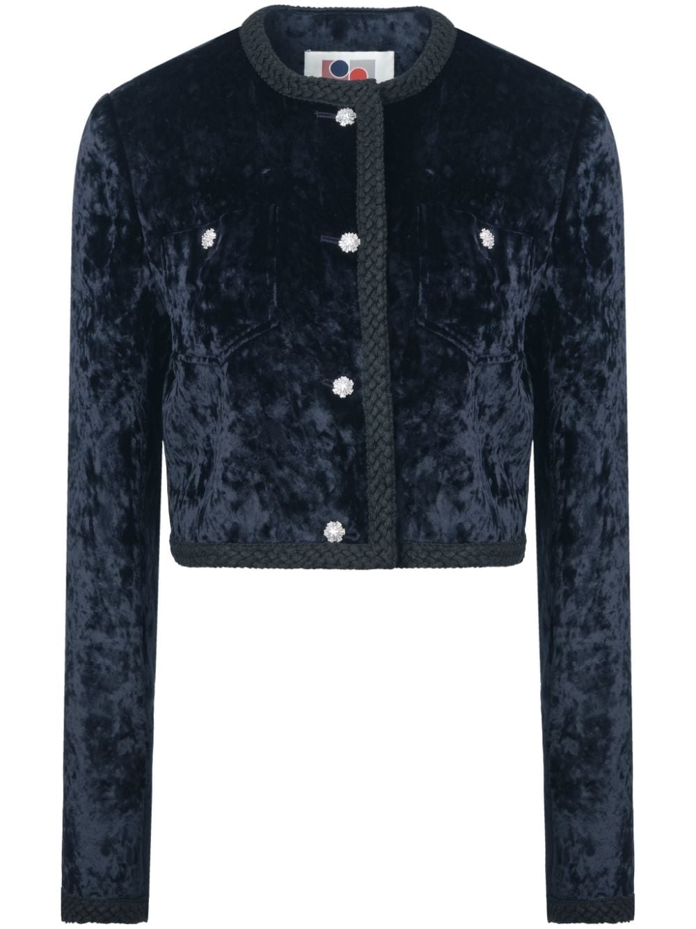 Ice Floral velvet-effect jacket Highlights - Navy blue - Velvet effect - Front button fastening - Round neck - Two front patch pockets - Contrasting trim Imported Composition Fabric 100%