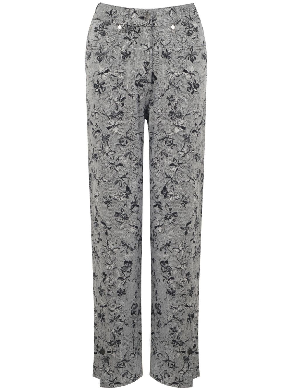 floral-print straight-leg jeans Highlights - Grey - Cotton - Denim - Front button and zip fastening - Belt loops - Floral print - Logo patch to the rear Made in Italy Composition Cotton 100%