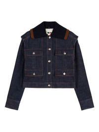 knitted-collar denim jacket Highlights - Blue - Knitted collar - Flap pockets - Button fastening - Dropped shoulders - Long sleeves Imported Composition pure cotton 99%, Elastane 1% Washing instructions Read Manufacturer Guidelines