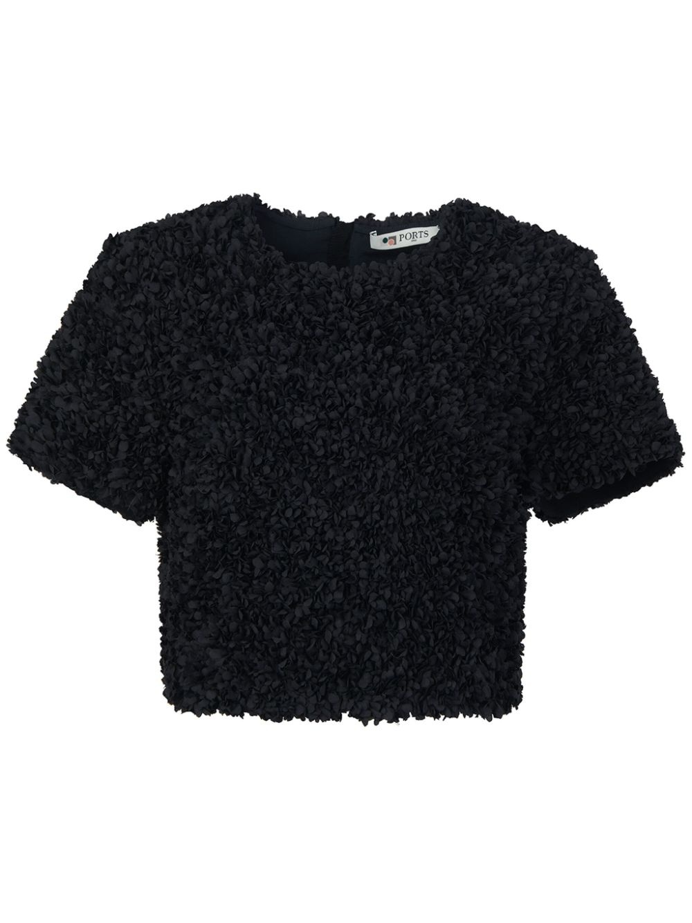 lightweight cropped top Highlights - Black - Fleece texture - Lightweight - Cropped - Concealed rear zip fastening - Crew neck - Short sleeves - Logo patch to the rear - Straight hem Imported Composition Polyester 100%
