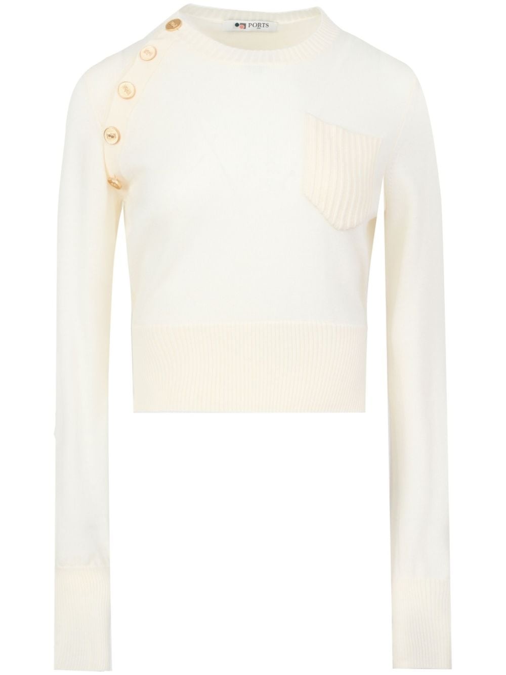 logo-button wool jumper Highlights - White - Wool - Knitted construction - Logo-engraved buttons - Asymmetric front button fastening - Round neck - Logo patch to the rear - Chest patch pocket - Long sleeves - Ribbed trim Imported Composition Wool 100%