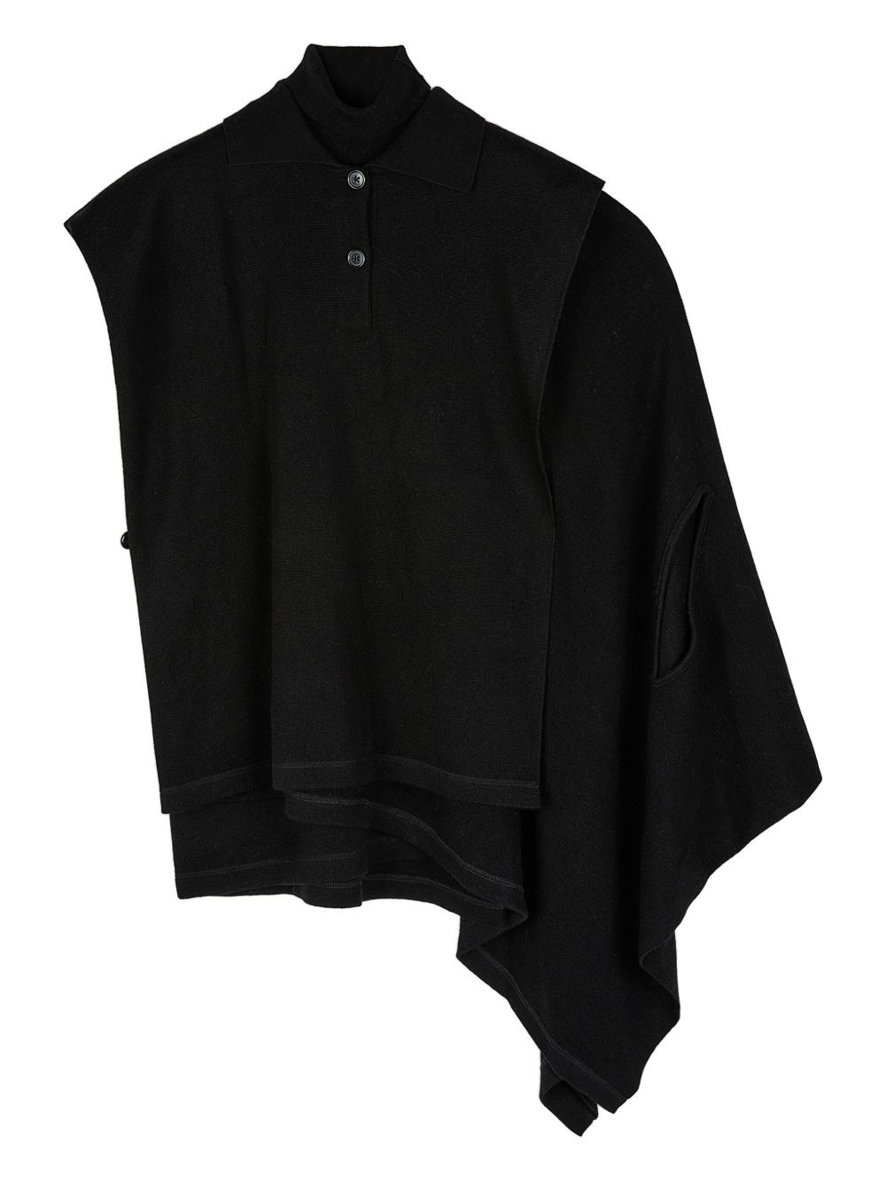 polo-neck cape sweater Highlights - Black - Wool-blend - Asymmetric hem - Two-button placket Imported Composition Wool 93%, Pure Silk 7% Washing instructions Read Manufacturer Guidelines