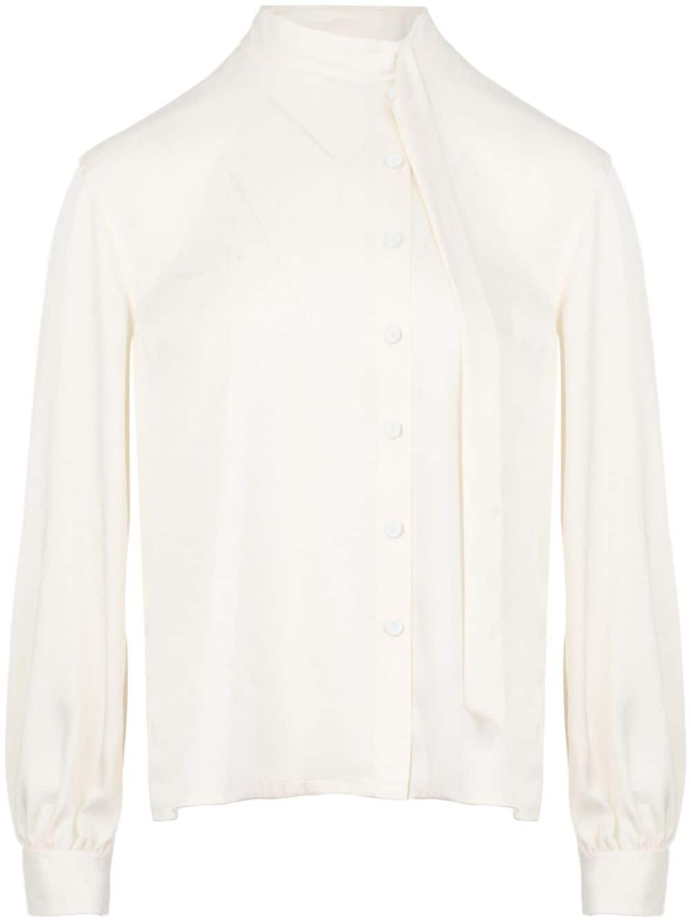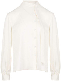 scarf-detail long-sleeve shirt Highlights - Ivory white - Scarf detailing - Stand-up collar - Side button fastening - Scarf detailing - Front button fastening - Long sleeves - Buttoned cuffs - Straight hem Imported Composition Polyester 100%