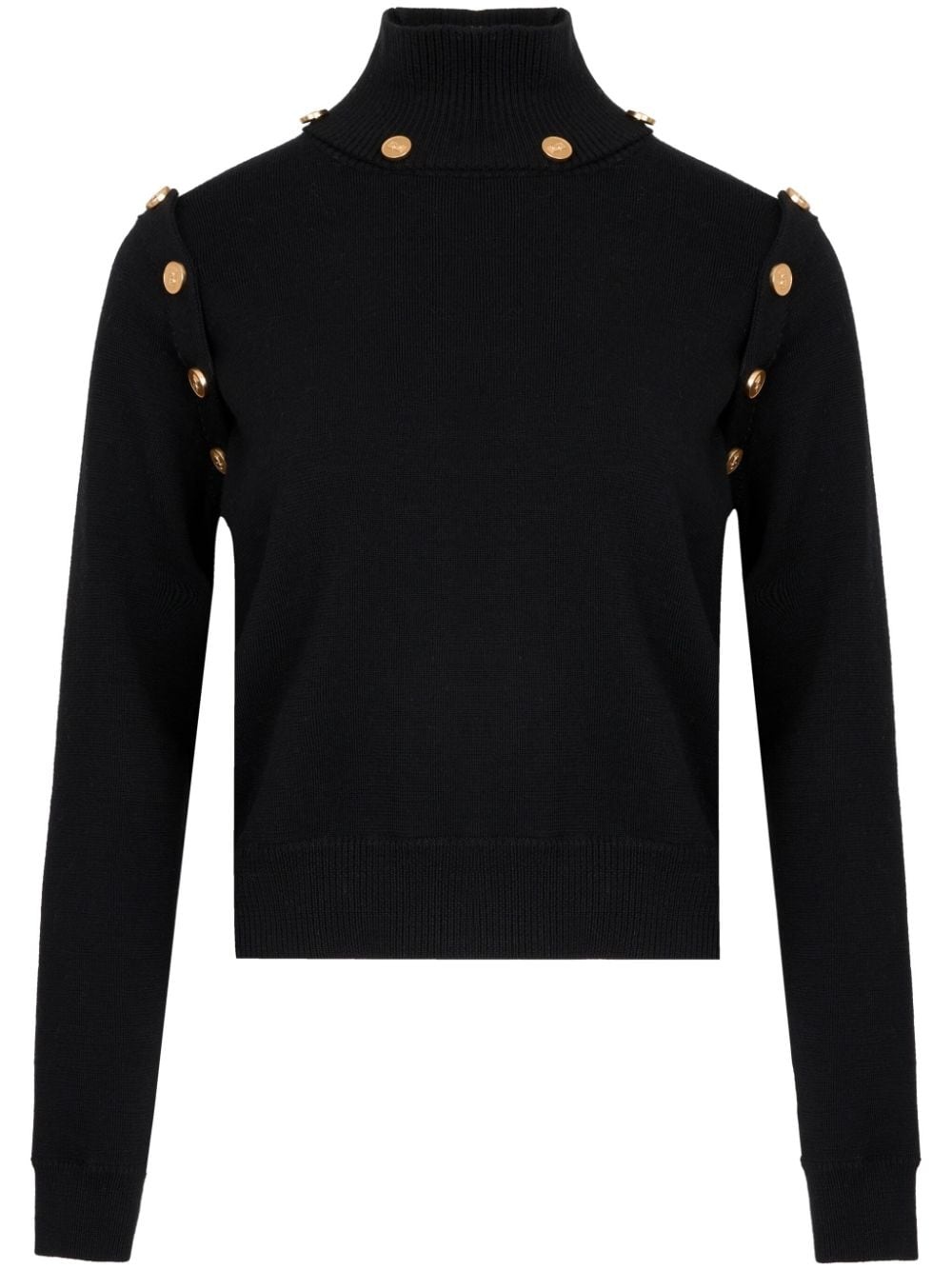 wool sweater Highlights - Black - Wool - High neck - Long sleeves - Ribbed cuffs and hem - Detachable sleeves - Logo patch to the rear Imported Composition Wool 100%
