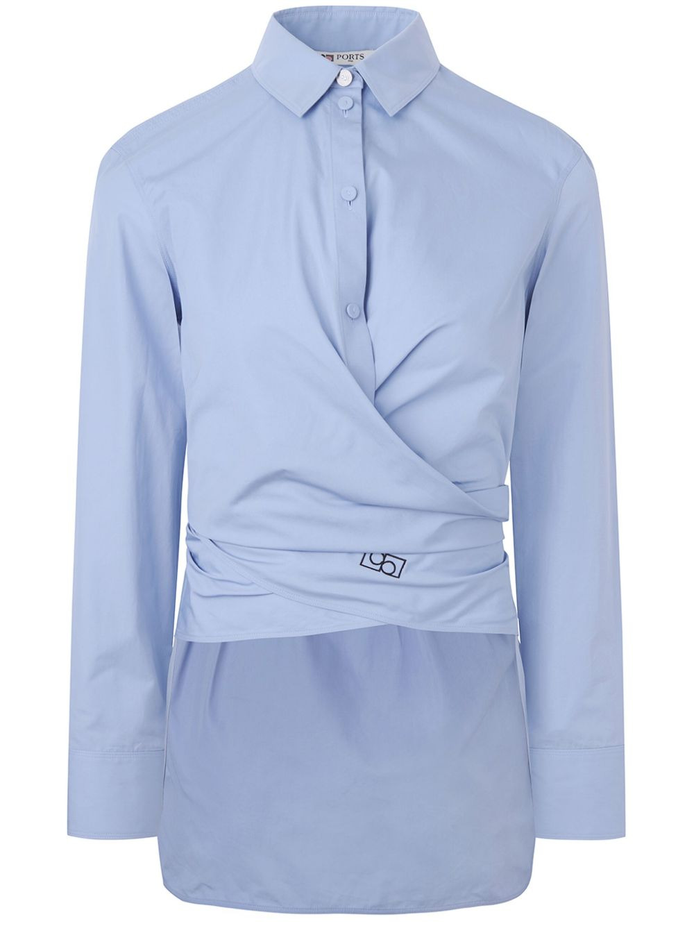 wrap cotton shirt Highlights - Blue - Cotton - Wrap design - Front button fastening - Classic collar - Long sleeves - Buttoned cuffs - Logo print to the front - Rear button fastening - Straight hem Imported Composition Cotton 100%
