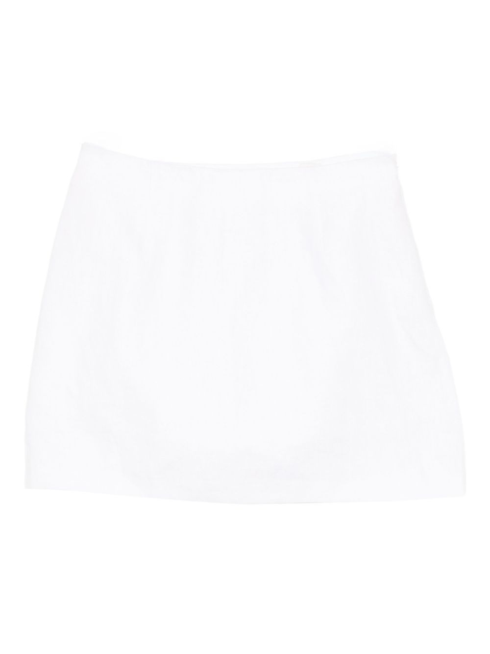 a-line cotton skirt Highlights - White - Concealed rear hook and zip fastening - Straight hem Imported Composition Lining: Cotton 100% Outer: Linen/Flax 100% SIZE & FIT Model measurements Height 5 ft 10 in(1.77 m) Bust/Chest 32.67 in(83 cm) Hips 37 in(94 cm) Waist 25.98 in(66 cm) FittingInformation This mini-length skirt is intended to be worn just below the waist Made from a midweight non-stretch fabric Washing instructions Machine Wash