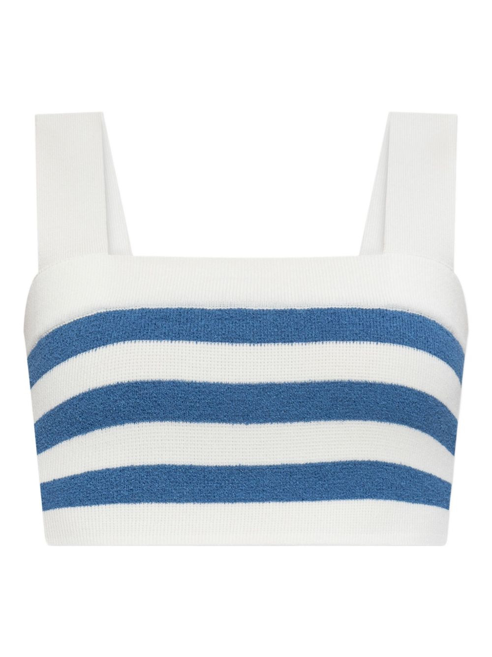 Ari striped square-neck top Highlights - Blue and white - Horizontal stripes - Square neckline - Sleeveless - Ribbed knit - Straight hem Imported Composition Polyester 78%, Viscose 22% Washing instructions Read Manufacturer Guidelines