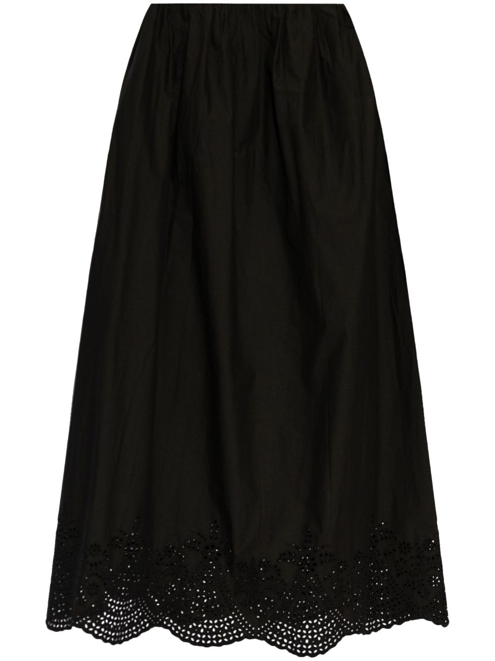 Beryl skirt Highlights - Black - Elasticated waistband - Two side inset pockets - Broderie anglaise - Mid-length Imported Composition BCI Cotton 100% Washing instructions Read Manufacturer Guidelines