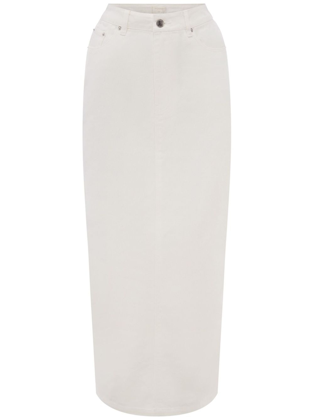 Harvey denim skirt Highlights - White - Cotton - Denim - Embroidered logo to the rear - Rivet detailing - Silver-tone hardware - High-waisted - Belt loops - Concealed fly and button fastening - Classic five pockets - Rear slit - Straight hem - Ankle-length Imported Composition Cotton 100%