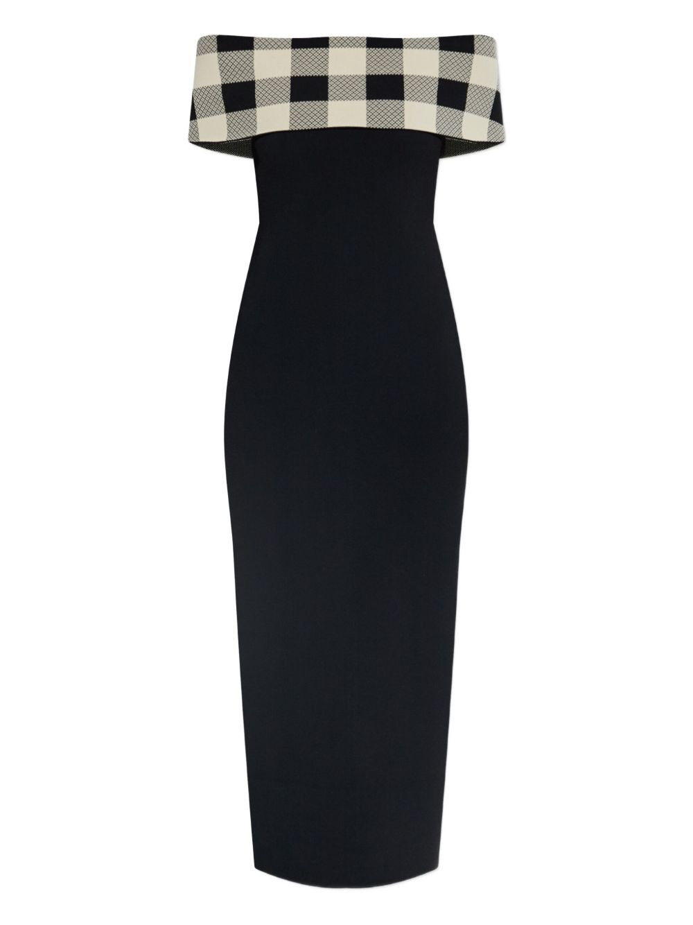 off-shoulder checked dress