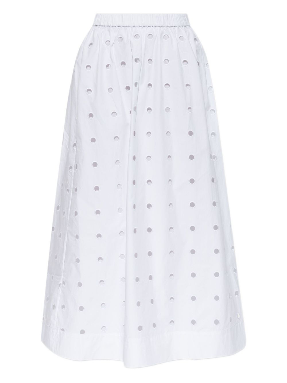 open-cut dots midi A-line skirt Highlights - White - Cotton fabric - Dots cut-out detailing - A-line shape - Elasticated waistband - Midi length Imported Composition Cotton 100% Washing instructions Dry Clean Only