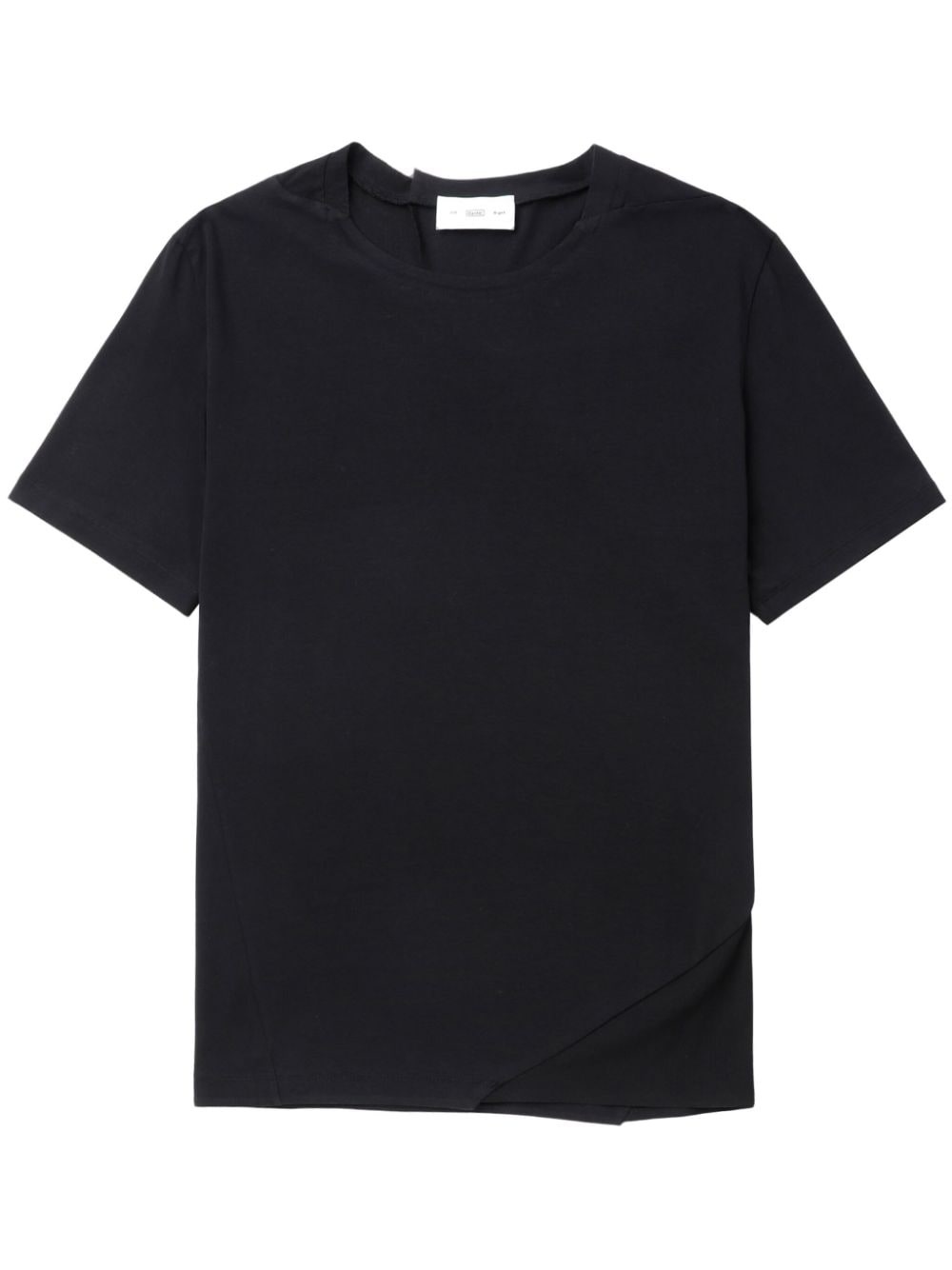 round-neck cotton T-shirt Highlights - Black - Cotton blend - Asymmetric design - Round neck - Short sleeves - Straight hem Imported Composition Cotton 95%, Elastane 5%