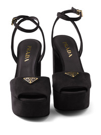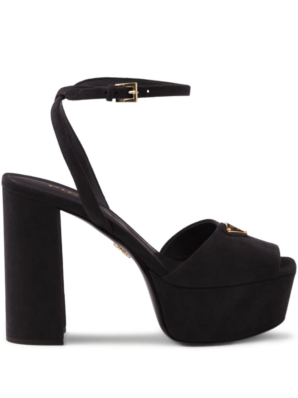 115mm suede platform sandals Highlights - Black - Buckle-fastening ankle strap - Open toe - Gold-tone detailing - Chunky heel - Platform soles Composition Outer: Goat Skin 100% Lining: Calf Leather 100% Sole: Rubber 100%, Leather 100% SIZE & FIT Measurement HEEL 4.52 in(11.5 cm)
