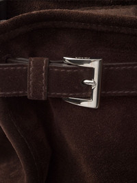 2VG128VOOO2C4S F0003 Brown Prada Bonnie suede tote bagThis pragmatic and sophisticated tote is made of suede embellished with elegant straps. The roomy style blends different references in a design with a sleek but distinctive aesthetic, embellished with the iconic enameled metal triangle logo. Composition Outer: Calf Suede 100% Lining: Recycled Nylon 100% SIZE & FIT Measurement DEPTH 6.69 in(17 cm) HEIGHT 14.17 in(36 cm) WIDTH 19.68 in(50 cm)