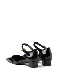 35mm patent-leather pumps Highlights - Black - Calf leather - Patent finish - 35mm low block heel - Enamel triangle logo - Square toe - Side buckle fastening - Branded insole Composition Lining: Calf Leather 100% Sole: Calf Leather 100%, Rubber 100% Outer: Patent Calf Leather 100% SIZE & FIT Measurement HEEL 1.25 in(3.2 cm)