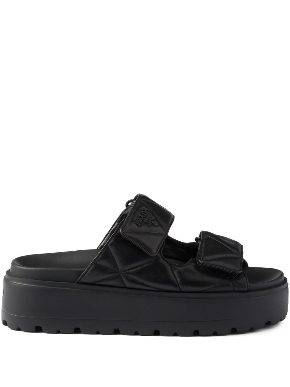 45mm leather slides Highlights - Black - Slip-on style - Platform sole - Branded footbed - Round open toe Composition Outer: Nappa Leather 100% Lining: Calf Leather 100% Sole: Rubber 100% SIZE & FIT Measurement HEEL 1.77 in(4.5 cm)