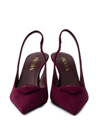 75mm slingback triangle-logo pumps Highlights - Burgundy - Suede texture - Slingback strap - 75mm heel - Triangle logo - Pointed toe Composition Lining: Leather 100% Sole: Leather 100% Outer: Suede 100% SIZE & FIT Measurement HEEL 2.75 in(7 cm)