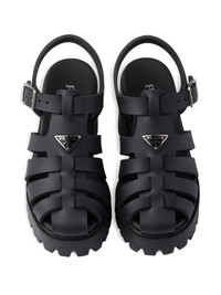 90mm metal buckle platform sandals Highlights - Black - Metal buckle - Enameled metal logo - Lug tread - Leather-covered insole Composition Outer: Polyethylene vinyl acetate (PEVA) 100% Lining: Polyethylene vinyl acetate (PEVA) 100% Sole: Rubber 100%