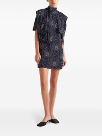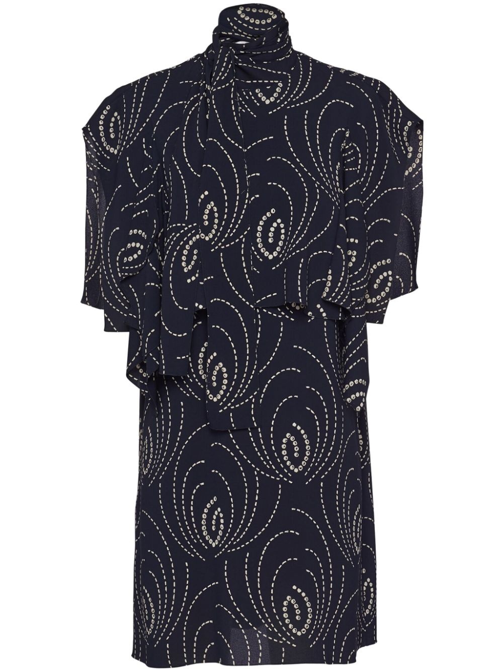 abstract-print layered minidress Highlights - Navy blue/light beige - Abstract pattern print - Double layer - Scarf detailing - High neck - Concealed rear zip fastening - Short slit sleeves - Thigh-length - Straight hem Composition Viscose 100% Washing instructions Read Manufacturer Guidelines