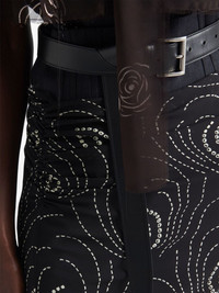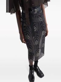 abstract-print midi pencil skirt Prada's skirt is defined by its semi-sheer georgette construction that assures a contemporary look. Boasting a pencil silhouette, it is elevated by an abstract print. Highlights - Black - Georgette - Semi-sheer construction - Pencil design - Side zip fastening - Rear slit - Knee-length Composition Nylon 100% Washing instructions Read Manufacturer Guidelines