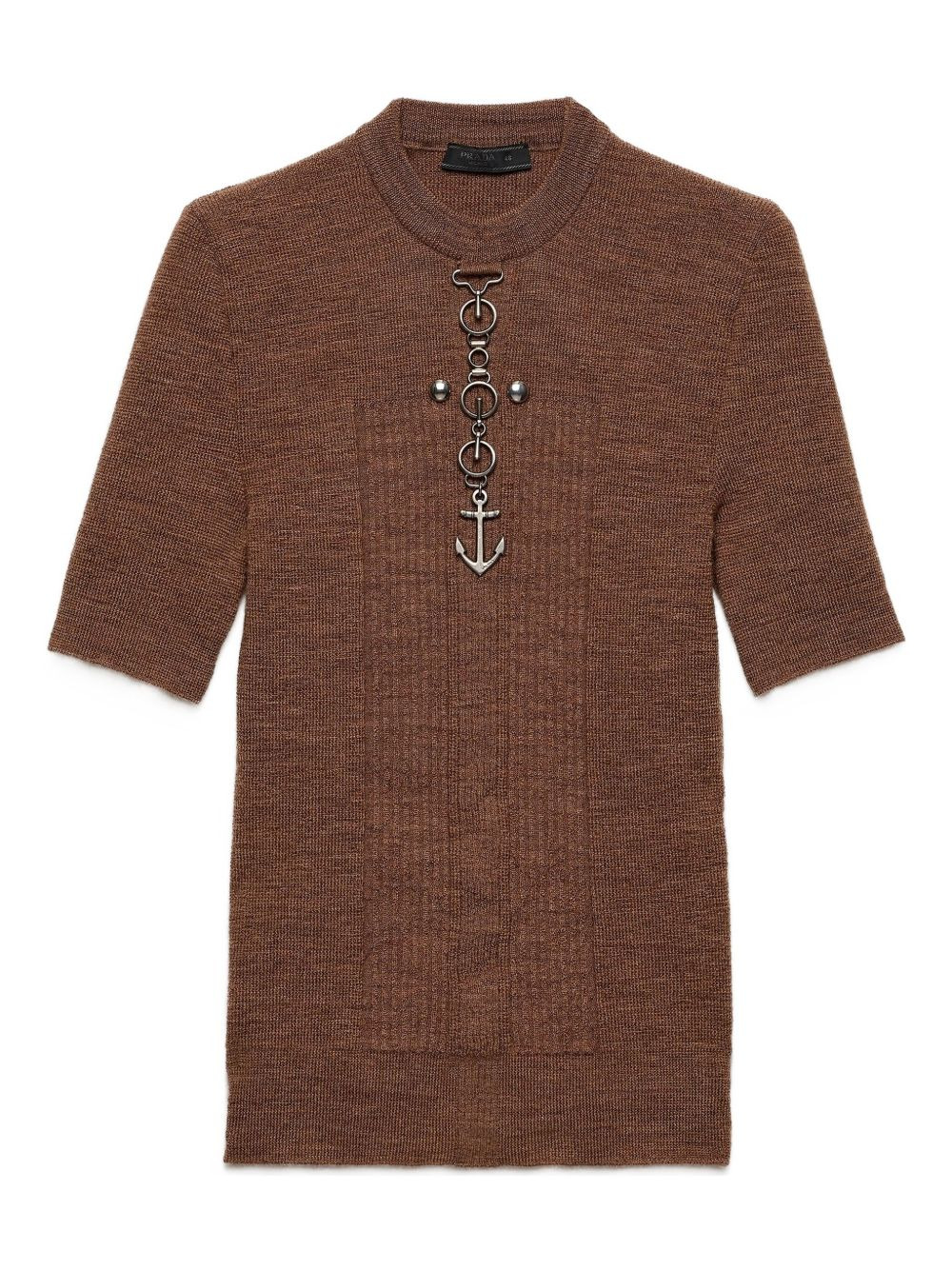 anchor-detail ribbed knit sweater Highlights - Brown - Ribbed knit - Metal pendant - Anchor detail - Short sleeves - Flat studs Composition Fabric 100% Washing instructions Read Manufacturer Guidelines