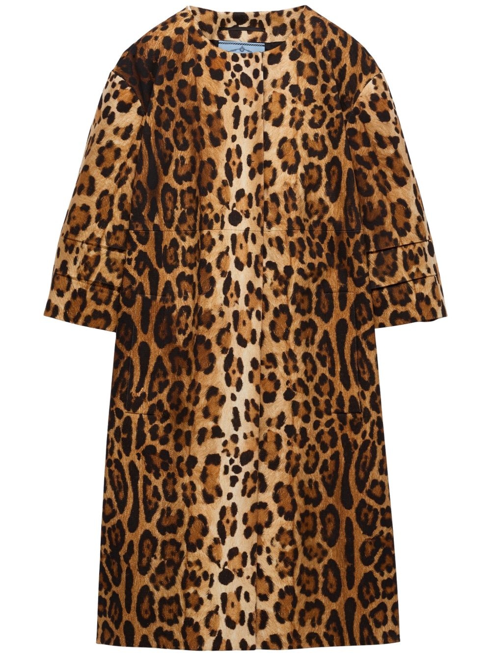 animal-print coat Highlights - Chocolate brown - Front button fastening - Two front patch pockets - Round neck - Three-quarter length sleeves Composition Cotton 100%