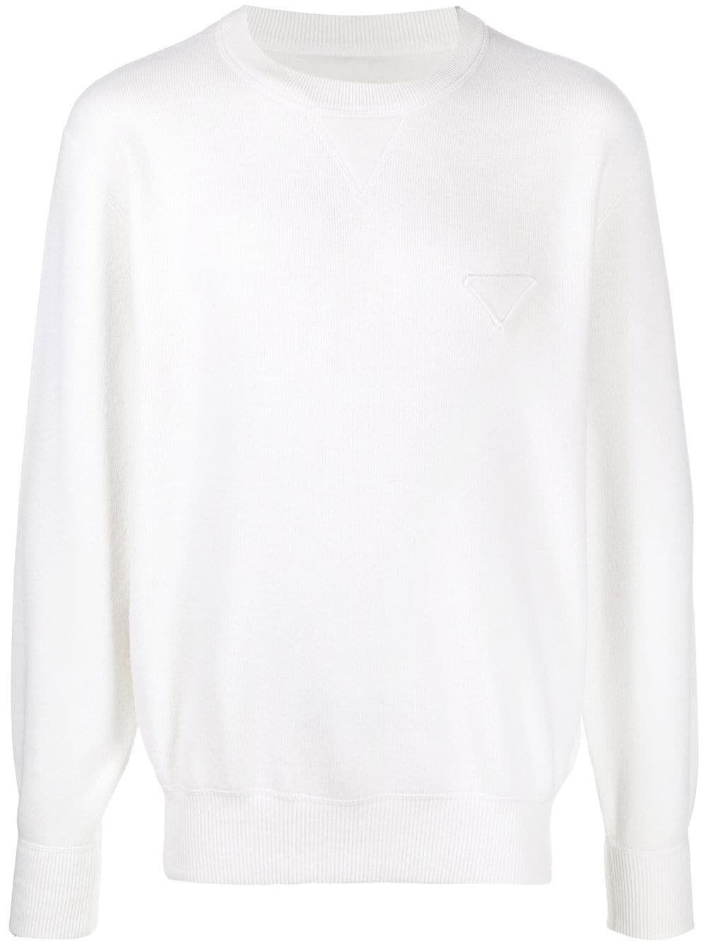 logo-applique sweatshirt Highlights - Applique-logo sweatshirt from prada featuring white, cashmere blend, applique logo, crew neck and long sleeves. Composition Cashmere 95%, Polyamide 4%, Spandex/Elastane 1% SIZE & FIT Model measurements Height 6 ft 0 in(1.84 m) Bust/Chest 35.82 in(91 cm) Hips 37 in(94 cm) Waist 28.34 in(72 cm) FittingInformation This piece fits true to size. We recommend you get your regular size Cut for a relaxed fit Made with a mid-weight fabric