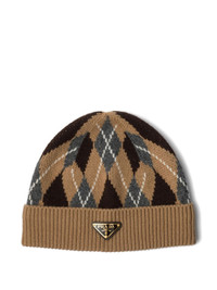 argyle knit beanie Highlights - Brown - Argyle pattern - Triangle logo plaque - Wool - Ribbed hem Composition Wool 100%
