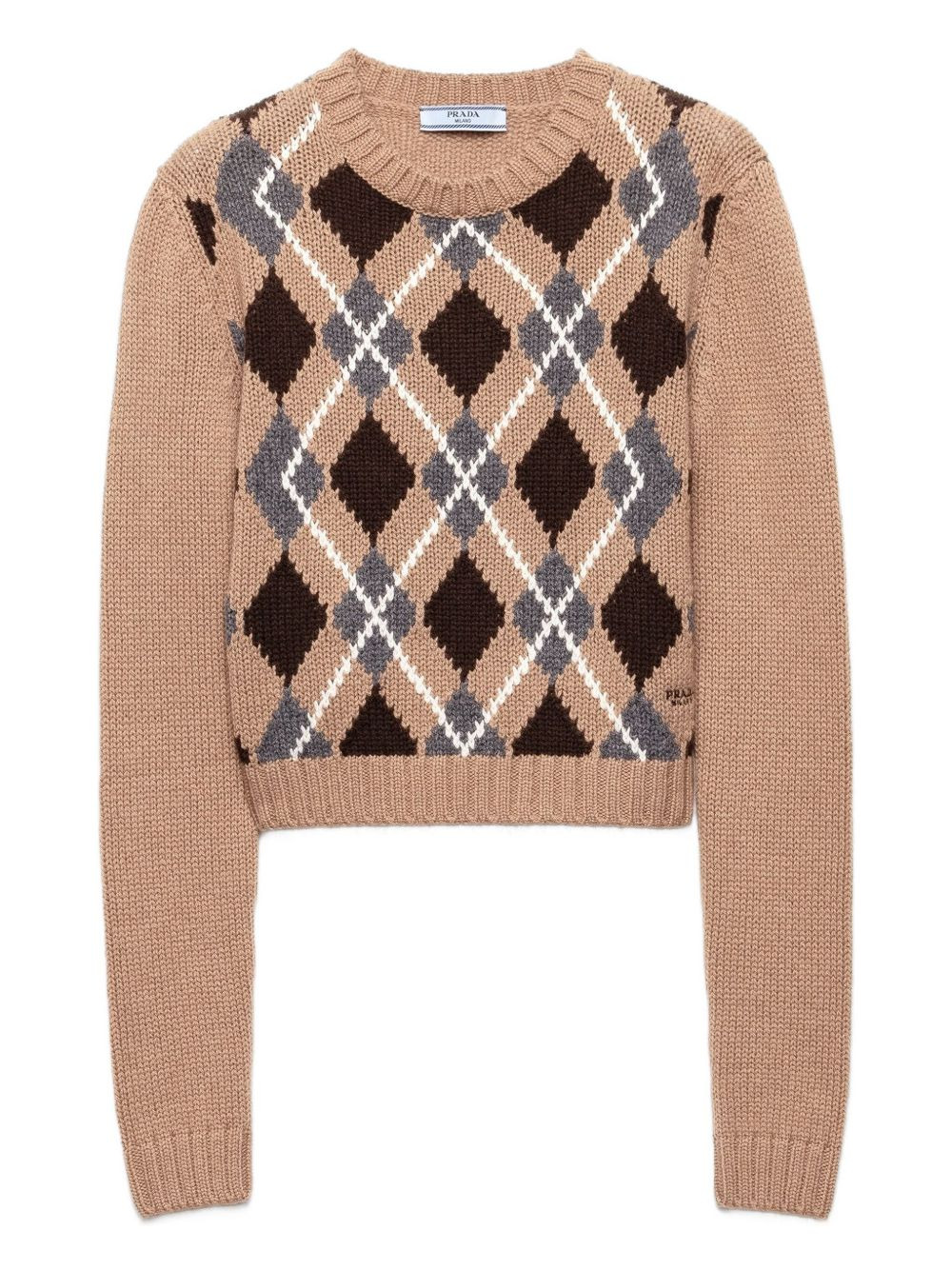 argyle-pattern crew-neck sweater Highlights - Brown - Argyle pattern - Crew neck - Long sleeves - Ribbed cuffs - Ribbed hem Composition Cashmere 100% Washing instructions Read Manufacturer Guidelines
