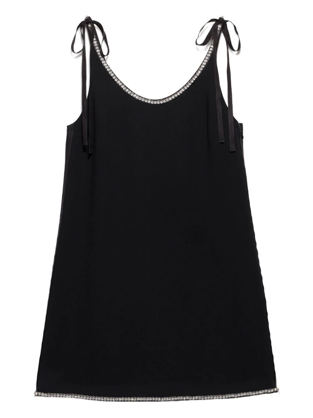 beaded tie-strap mini dress Highlights - Black - Beaded trim - Tie straps - Scoop neck - Side zip fastening Composition Acetate 70%, Viscose 30% Washing instructions Read Manufacturer Guidelines