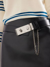 belted leather miniskirt Highlights - Black - Wide belt detail - Concealed side zip fastening - Contrasting buckle - Chain accent - A-line shape - Seamless finish Composition Calf Leather 100%